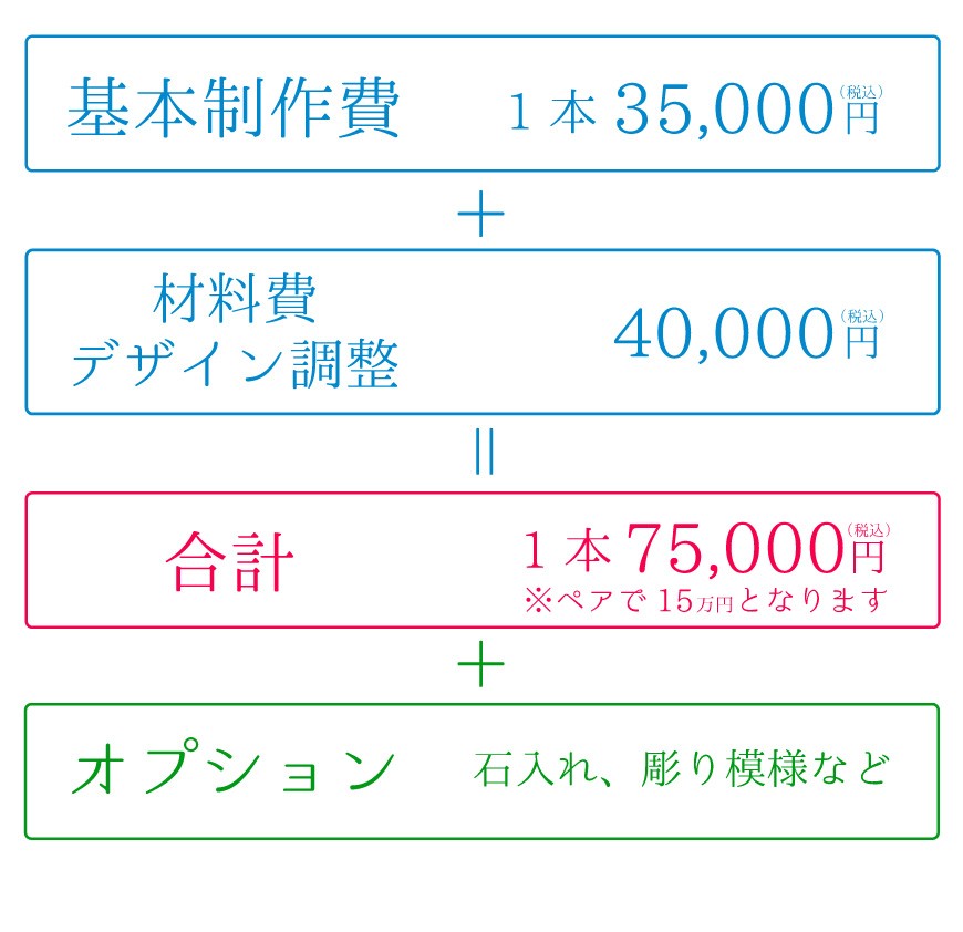 - 幅2.5ミリ以上でお作りする場合は、上記のお値段と異なります。寸法をご指定される場合は、ご相談ください。