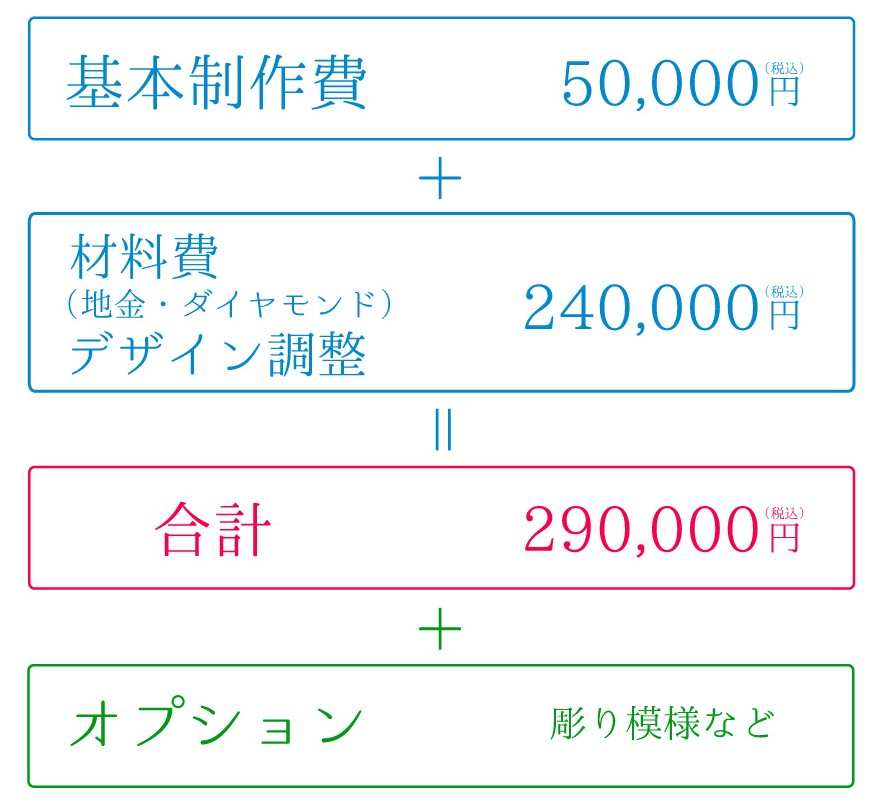 - 指輪サイズが男性17号以上、女性14号以上からは追加料金が発生します。
