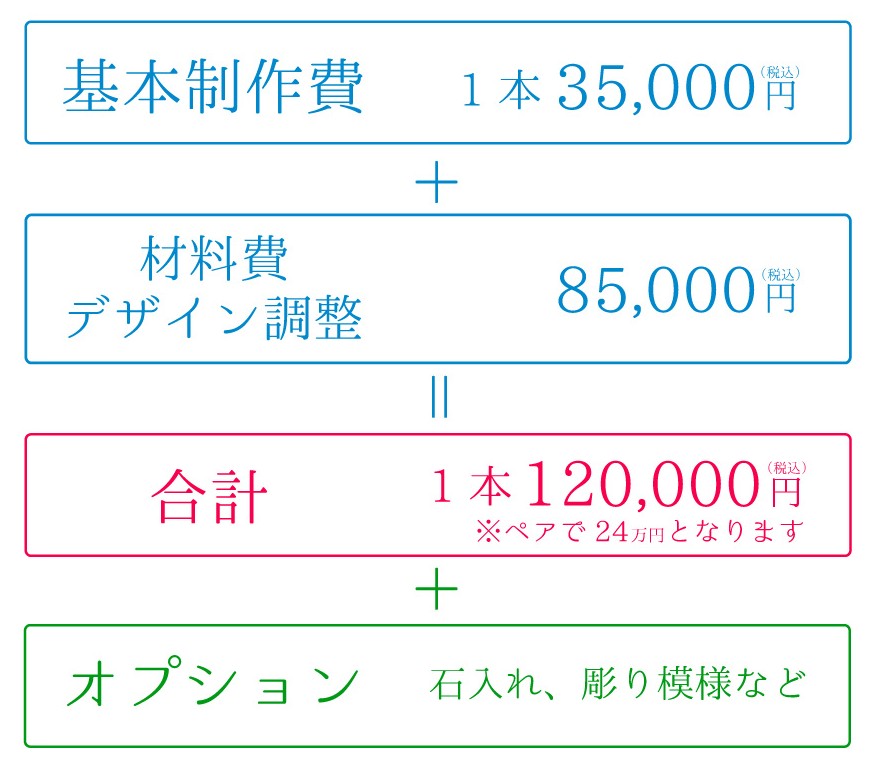 - 幅2.5ミリ以上でお作りする場合は、上記のお値段と異なります。寸法をご指定される場合は、ご相談ください。